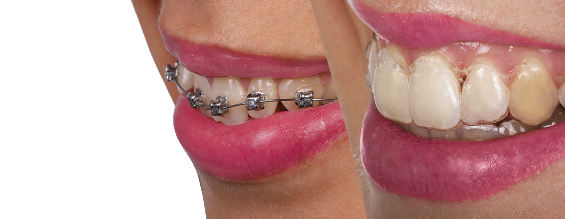 O aparelho de resina/cerâmica, conhecido como aparelho estético, tem a grande vantagem de ser quase imperceptível no seu sorriso, no entanto são mais frágeis e prolongam relativamente o tempo de tratamento.