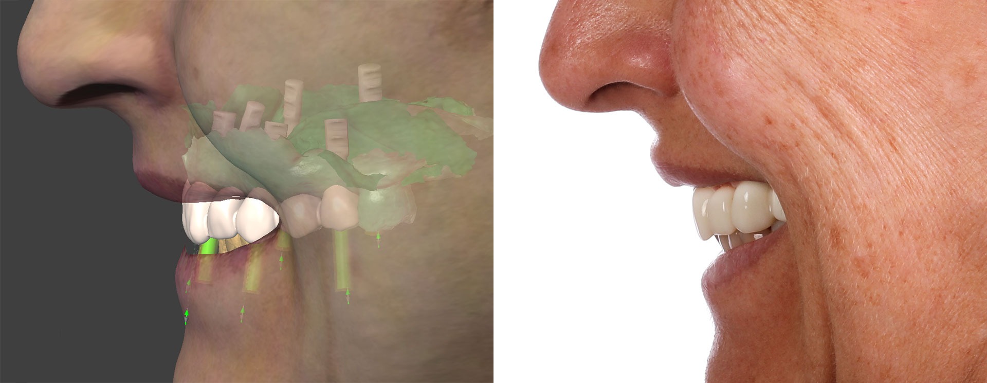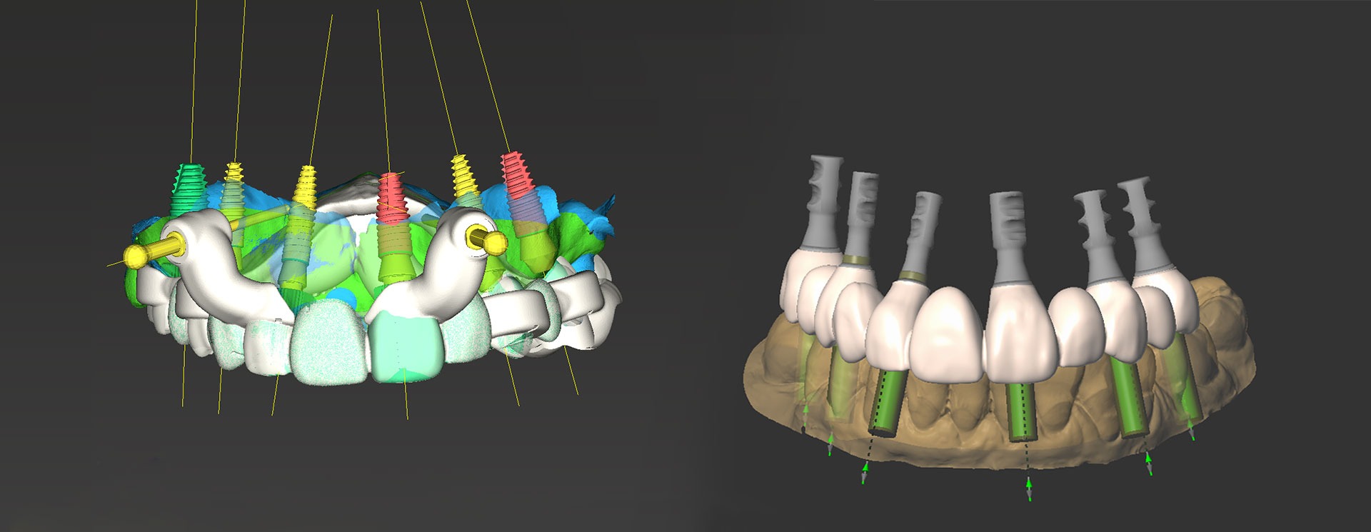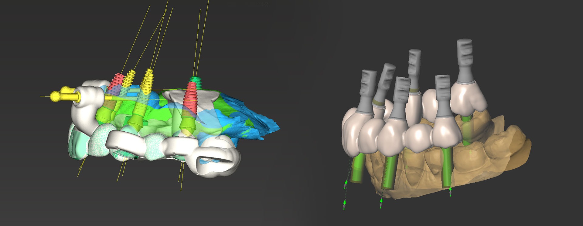 Apoiado neste planeamento digital, são desenvolvidas guias implantológicas que transpõem para o acto cirúrgico todo o planeamento executado, evitando o erro humano e tornando a cirurgia fiel ao seu planeamento. Desta forma obtemos uma cirurgia realizada em menor tempo, minimamente invasiva, sem cortes (incisões) e sem pontos (suturas), que vai resultar depois num pós-operatório indolor, atraumático e sem edemas.