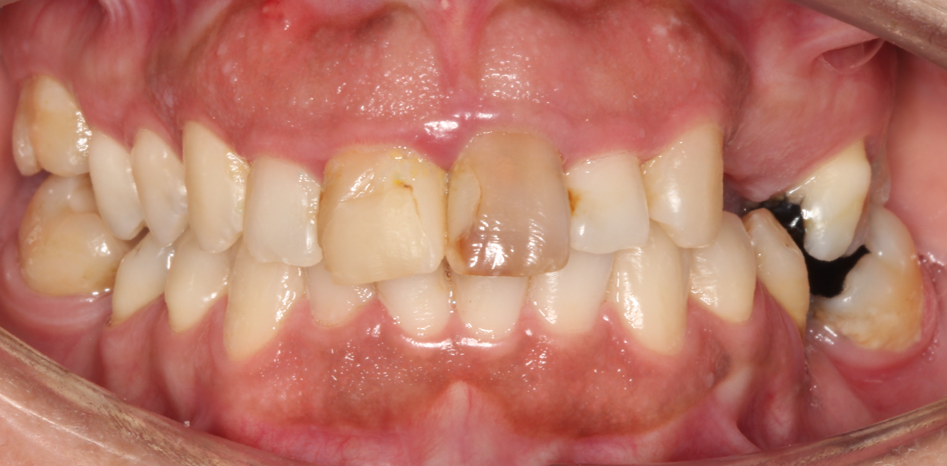 Sorriso da paciente antes de iniciar qualquer tratamento.